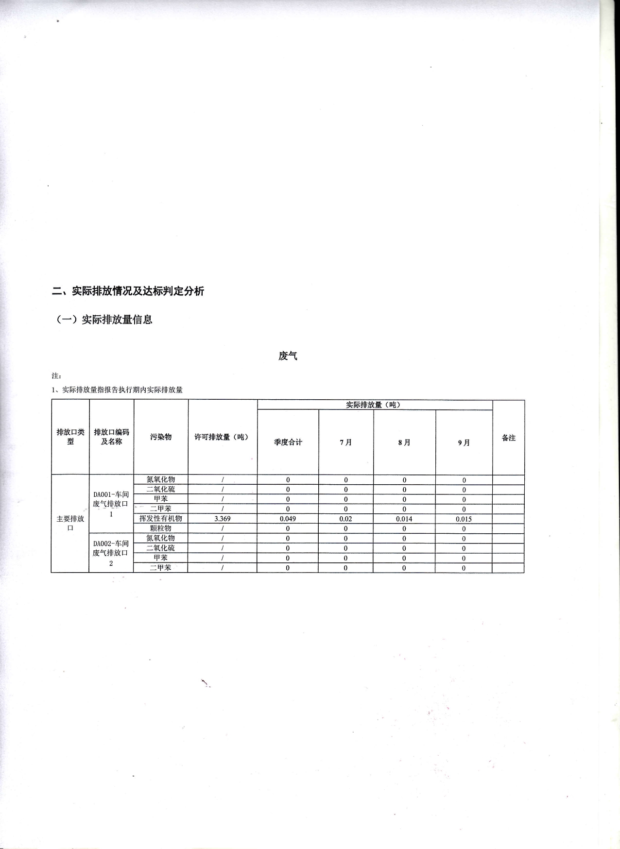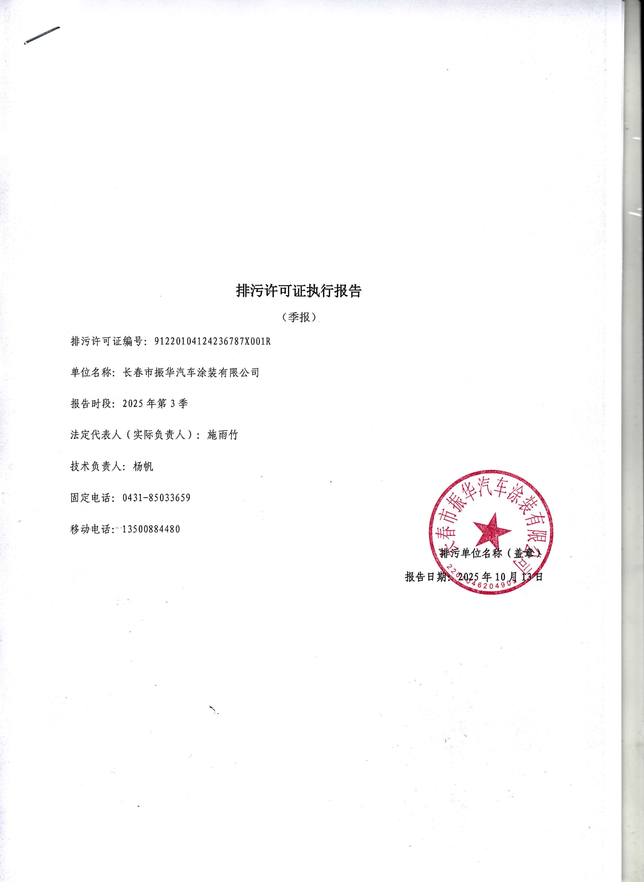 排污许可证执行报告2025年第三季度